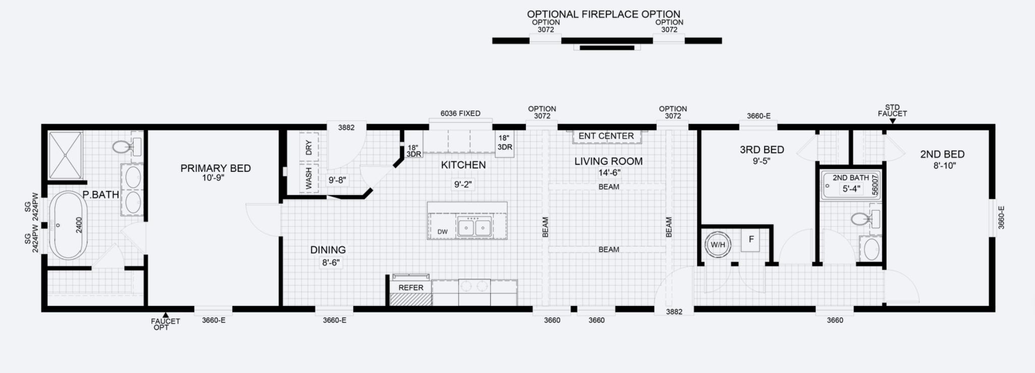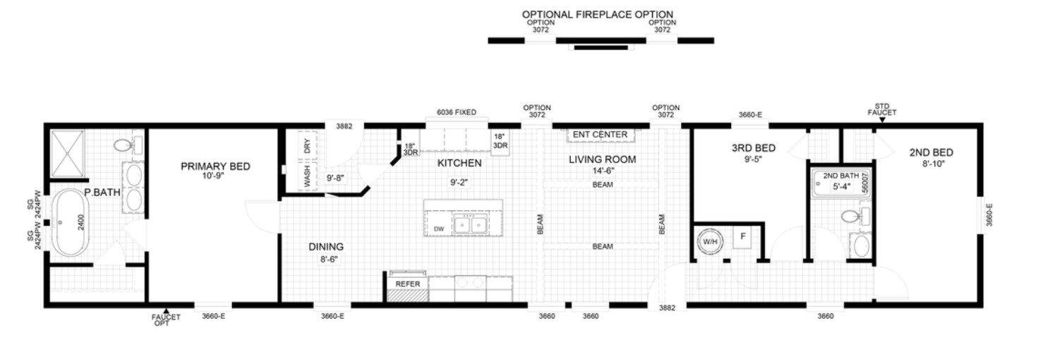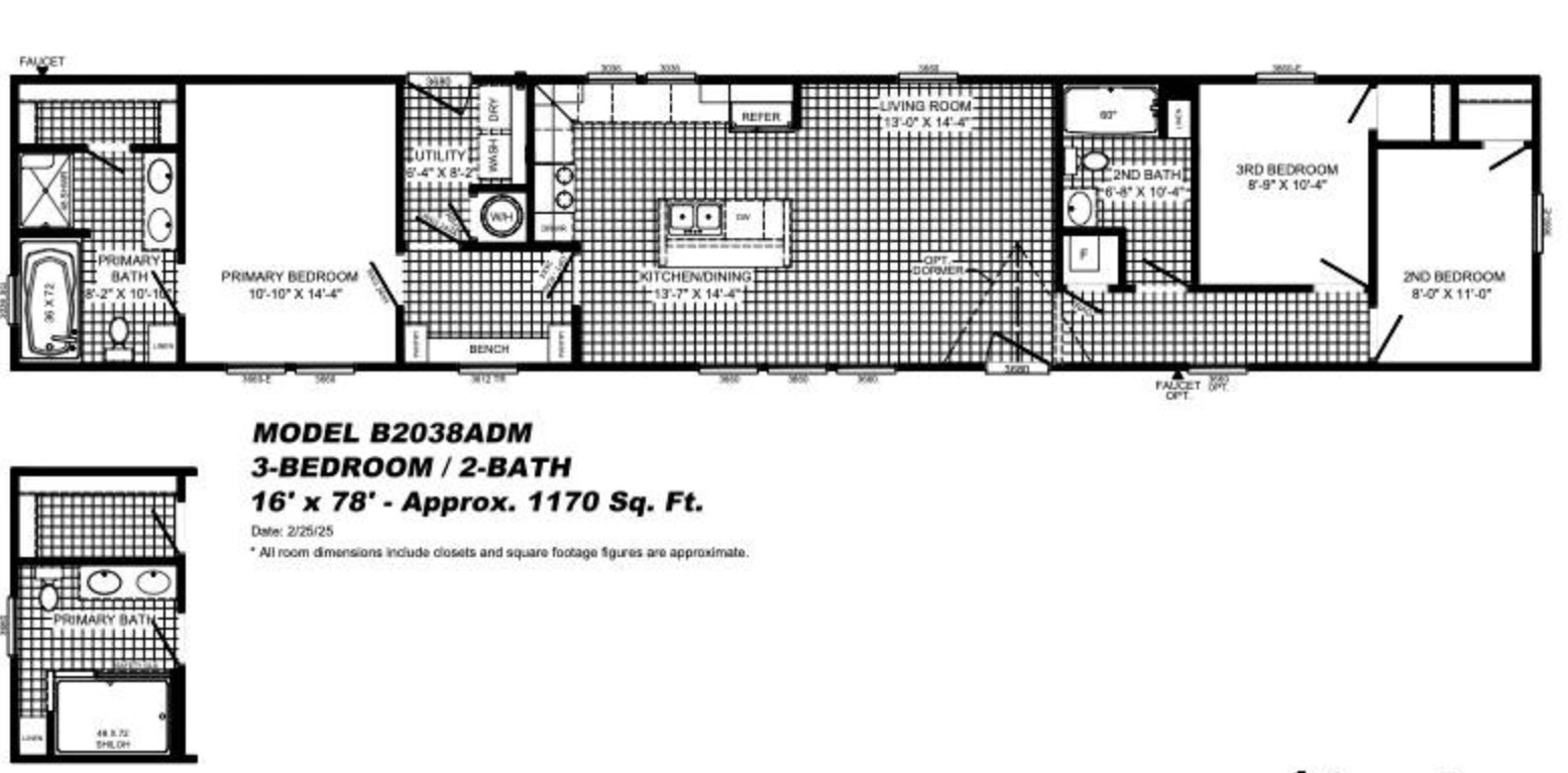 MODEL: Marion16×78 (82′ overall)3 Bedroom, 2 Bath